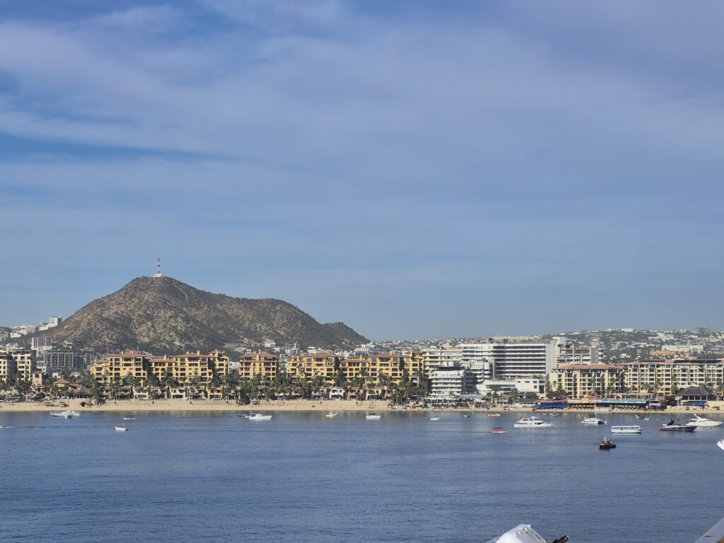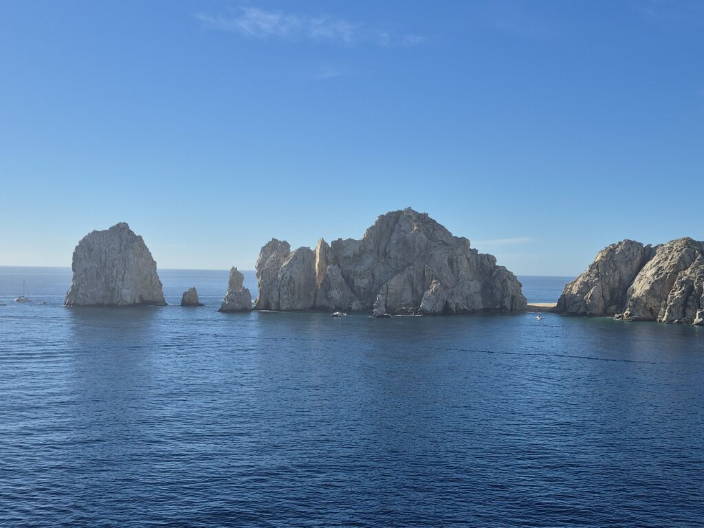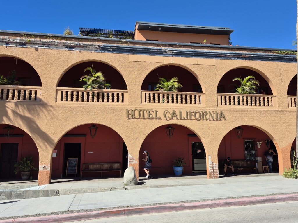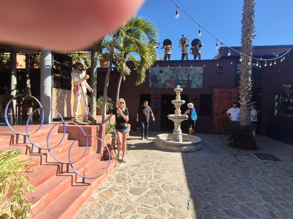 We arrived in Todos Santos and drove through the downtown area’s cobble stone streets. We exited the bus and toured through the old cultural centre and museum that depicted how Todos Santos developed through the years. Kelly and I walked through the streets checking out the stores and craft centres before arriving at Hotel California for our luncheon. Hotel California is not actually the ‘Hotel California’ of the Eagles fame – the Eagles actually sued the owners over the name but the Hotel had been around for many years before the album was released. And we were among the last visitors to visit inside the building – it’s being turned into condominiums this January and will be closed to the public, however the souvenir store will still be available. We explored the town some more – it is a very pretty town – before driving back along the coast to return to Cabo San Lucas and the ship. We did see many whales along our trip back.