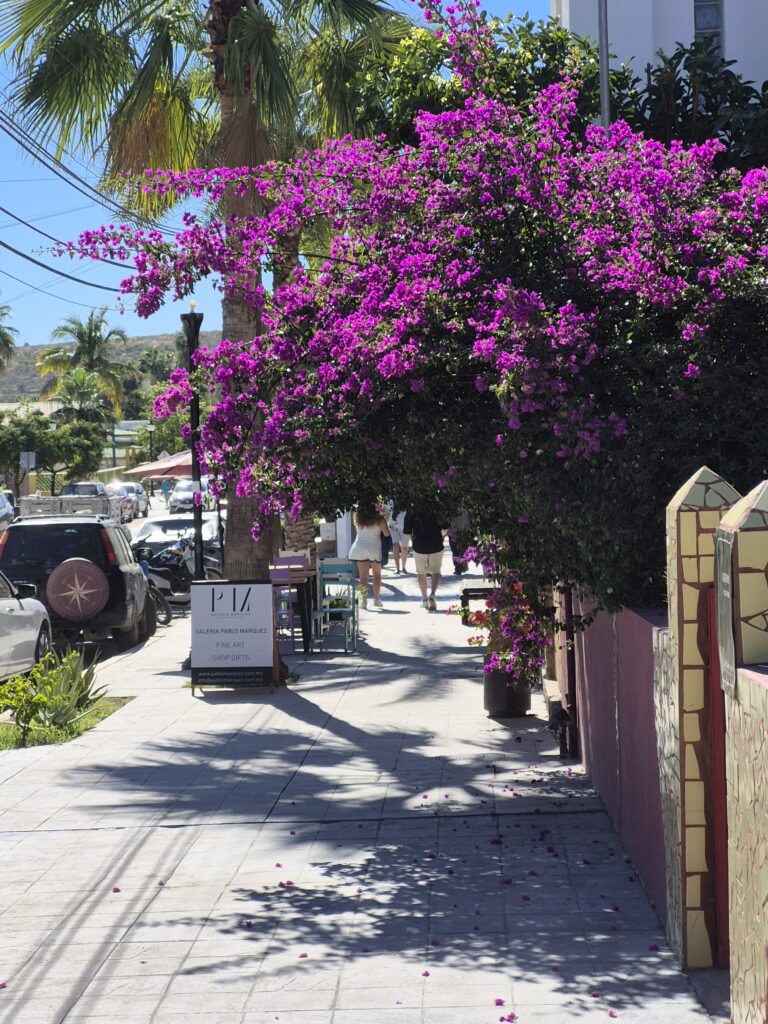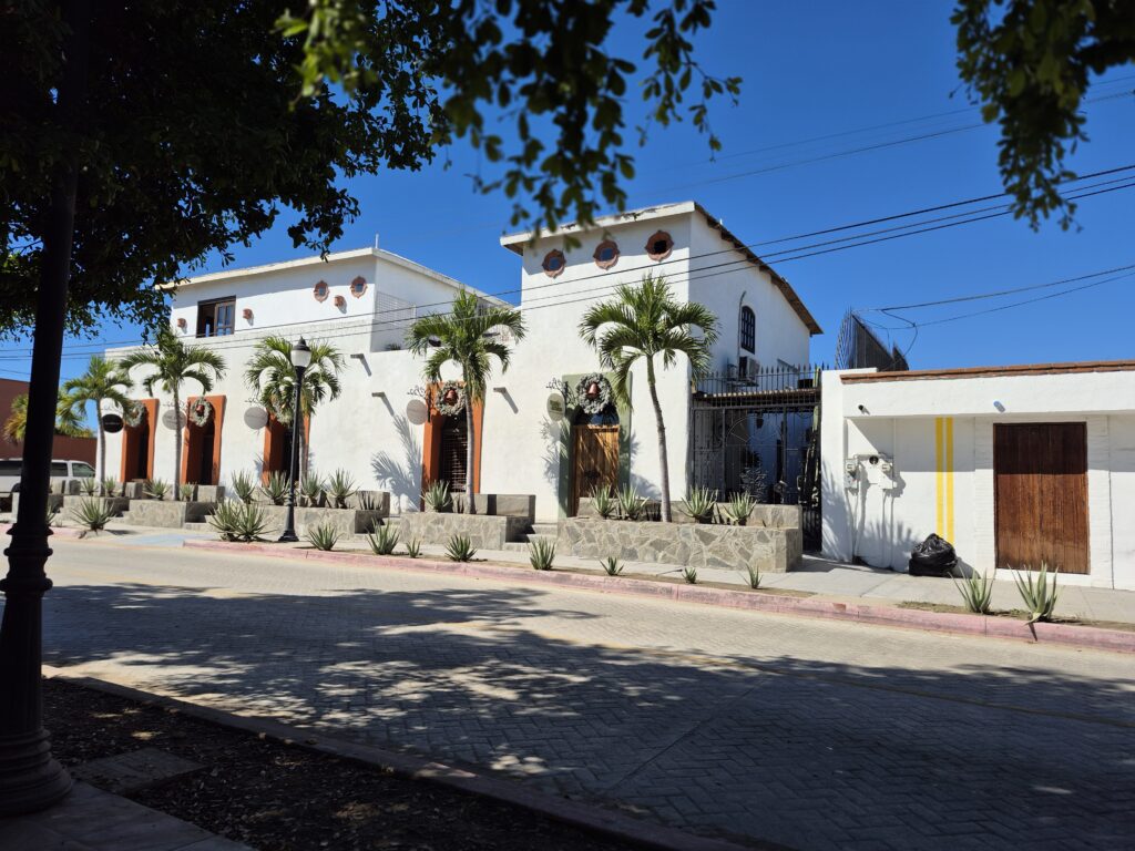 We aren’t big fans of Cabo – it’s too crowded and busy and the vendors tend to be pushy and noisy – so we had picked an excursion to go to Todos Santos, about 100km (62 miles) up the coast. We anchored in the bay and took a tender to the port and walked about 10 minutes up to our excursion bus. Throughout the drive the tour guide informed us of the history of Los Cabos (name of the area comprising Cabo San Lucas and San Juan de Cabo) and Todos Santos. Todos Santos was initially founded as a Mission in 1724. Later, it became a major sugar-cane producer. Over the past 40 years it has become a major tourist attraction due to the many artists, musicians, and crafts people that have set up studios and workshops there, the many ecological tours and activities that are available, and the many historical buildings that can be visited. Todos Santos is one of the fastest growing areas in Mexico.