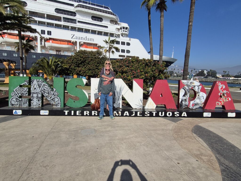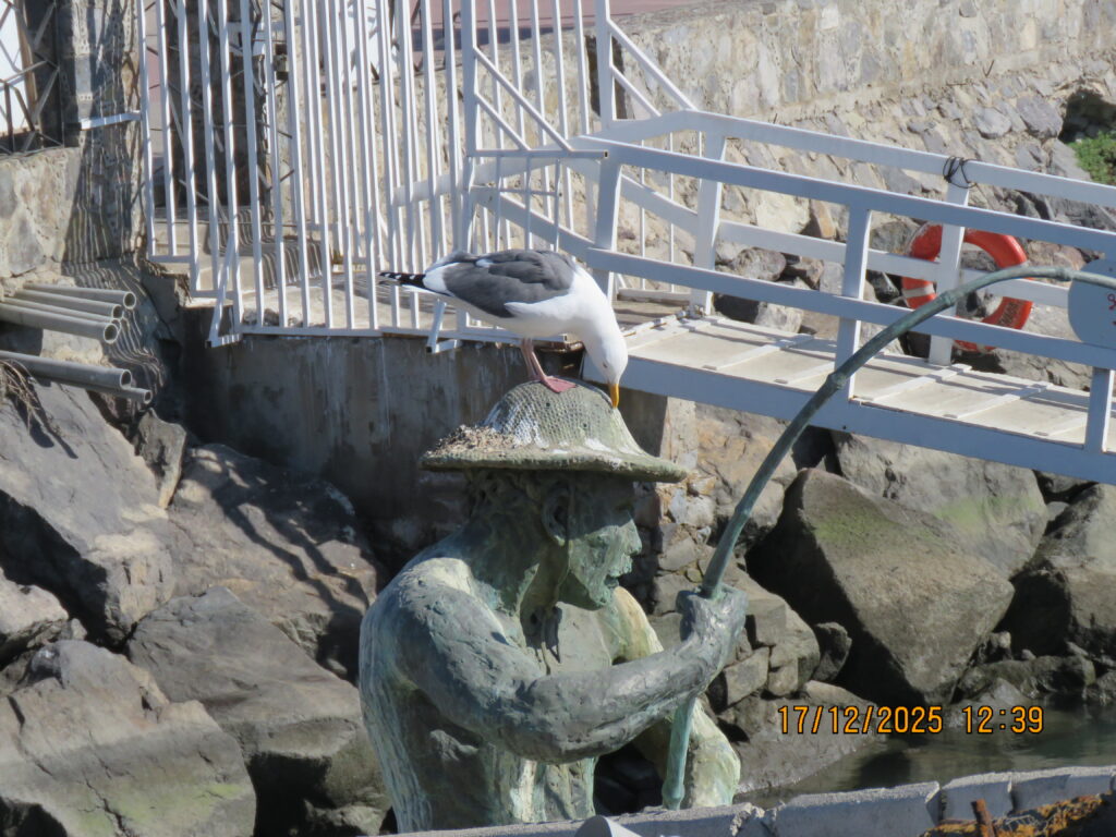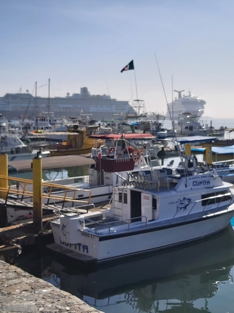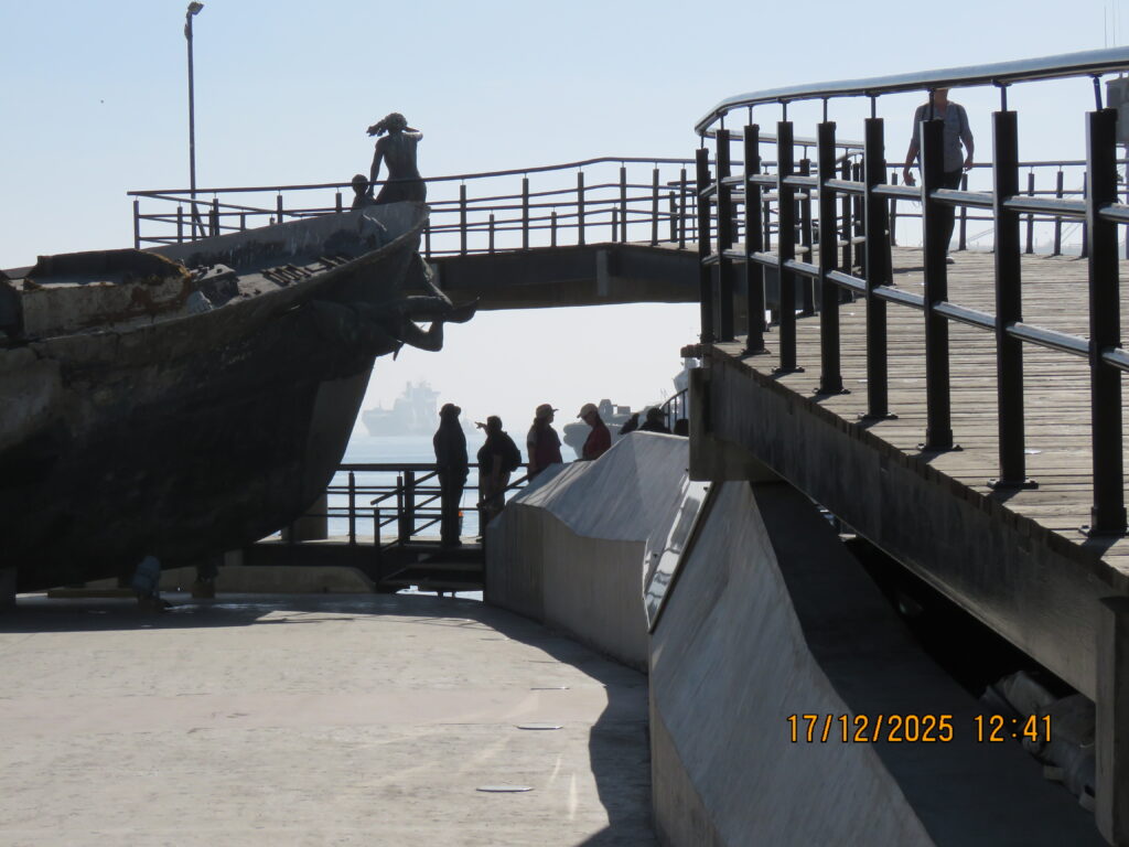 We had never been in Ensenada before so we decided just to go ashore and wander around town. The cruise port is a fair distance from downtown, you can either take a taxi or walk – we walked 😊. We went through the craft market at the end of the pier – same old, same old 😊 – We went down the Boulevard de las Dumas, not a lot to see here, but they did have a cultural centre decorated for Christmas, a band stand, and an ice skating rink – outside, not covered, the ice surface already melting 😊 Very Strange. We ended up at the Andador Turistico, another craft market, with a seafood market. Here’s the deal – you go through the fish market, pick out what you want to eat, pay for it – and then go across to one of the many restaurants in the market, where for a small fee they will cook it for you!! 😊 We wandered around the waterfront for a while and looked at the fisherman’s memorial and the fishing boats. We headed up to the main drag – very busy and very loud – you could buy anything you wanted here, or go to a famous Mexican Bar, or many restaurants, or just play tourist and look around. It was a little loud for me so we headed back to the old tourist area where they still had the hotels that famous people and actors went to in the ‘50’s and ‘60’s. It was a nice walk 😊. We then headed back to the cruise port after walking about 5 miles 😊.