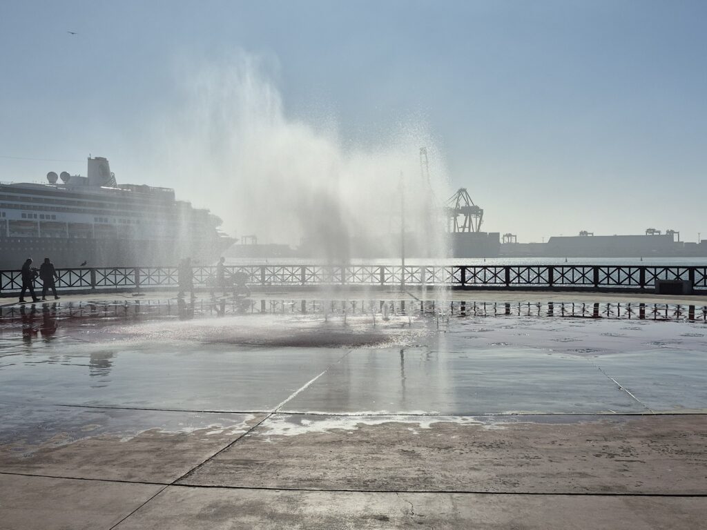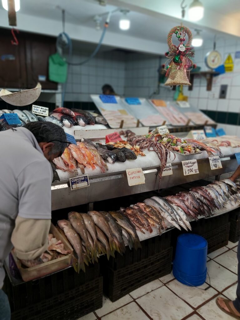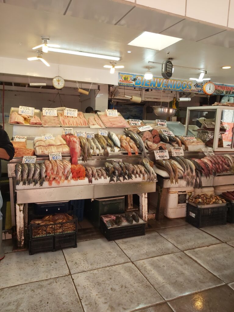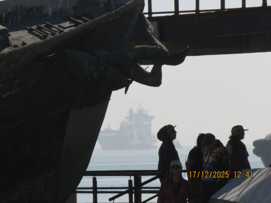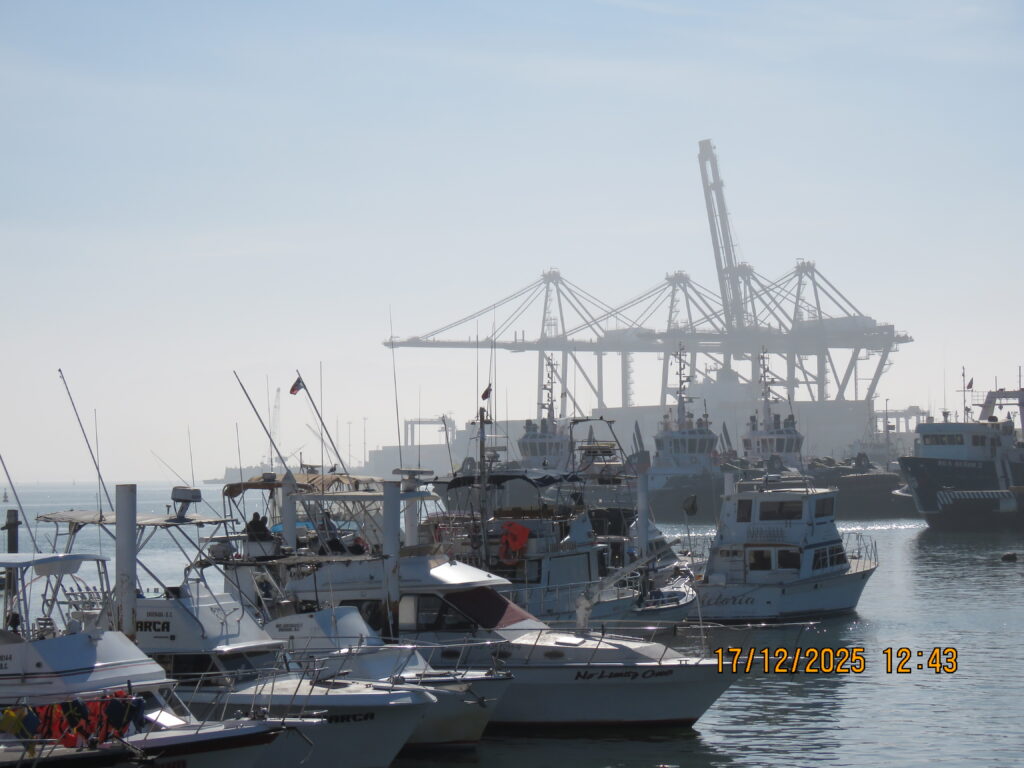 We had never been in Ensenada before so we decided just to go ashore and wander around town. The cruise port is a fair distance from downtown, you can either take a taxi or walk – we walked 😊. We went through the craft market at the end of the pier – same old, same old 😊 – We went down the Boulevard de las Dumas, not a lot to see here, but they did have a cultural centre decorated for Christmas, a band stand, and an ice skating rink – outside, not covered, the ice surface already melting 😊 Very Strange. We ended up at the Andador Turistico, another craft market, with a seafood market. Here’s the deal – you go through the fish market, pick out what you want to eat, pay for it – and then go across to one of the many restaurants in the market, where for a small fee they will cook it for you!! 😊 We wandered around the waterfront for a while and looked at the fisherman’s memorial and the fishing boats. We headed up to the main drag – very busy and very loud – you could buy anything you wanted here, or go to a famous Mexican Bar, or many restaurants, or just play tourist and look around. It was a little loud for me so we headed back to the old tourist area where they still had the hotels that famous people and actors went to in the ‘50’s and ‘60’s. It was a nice walk 😊. We then headed back to the cruise port after walking about 5 miles 😊.