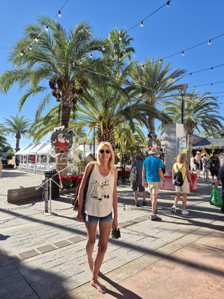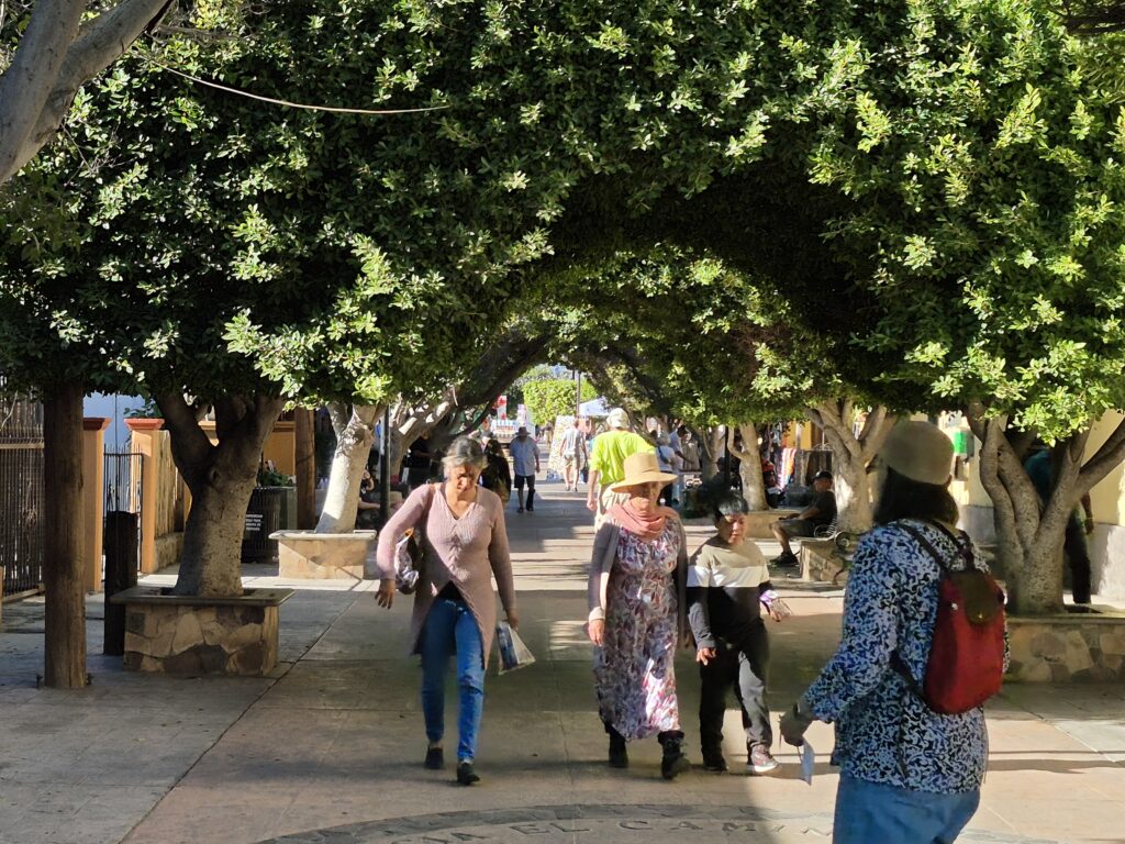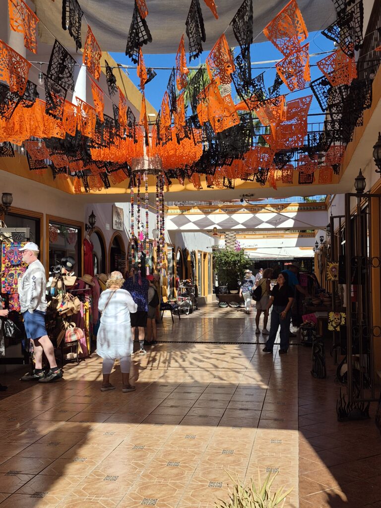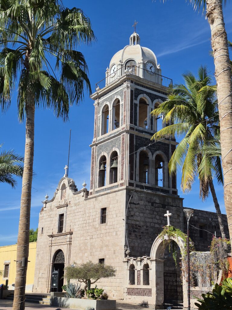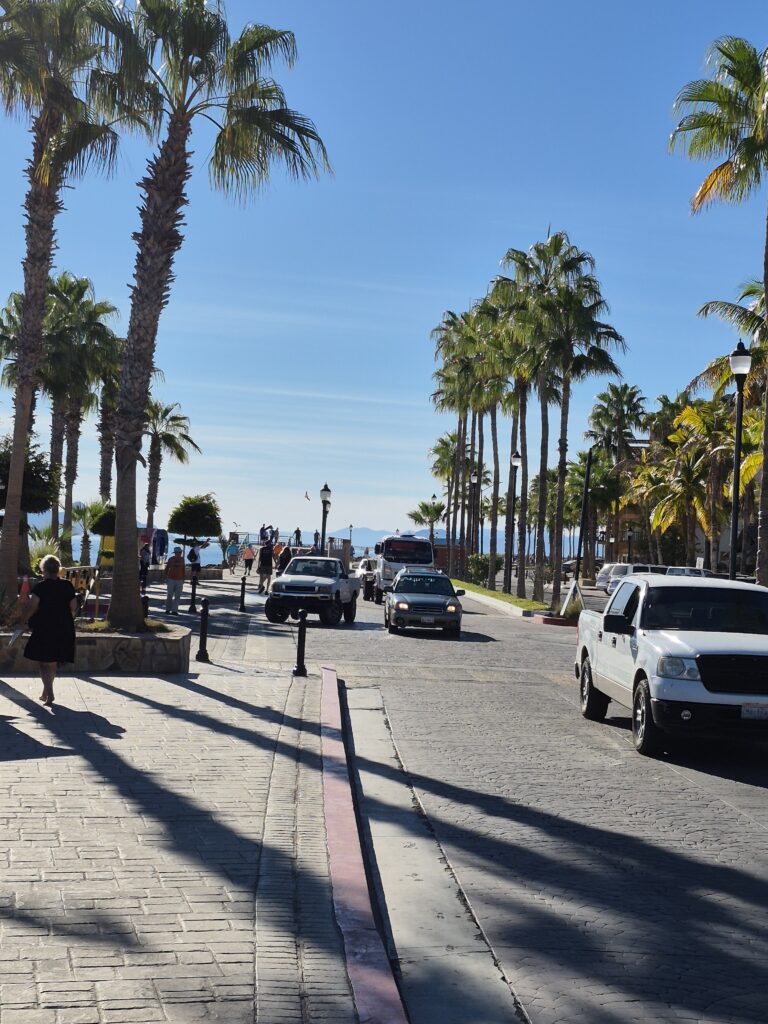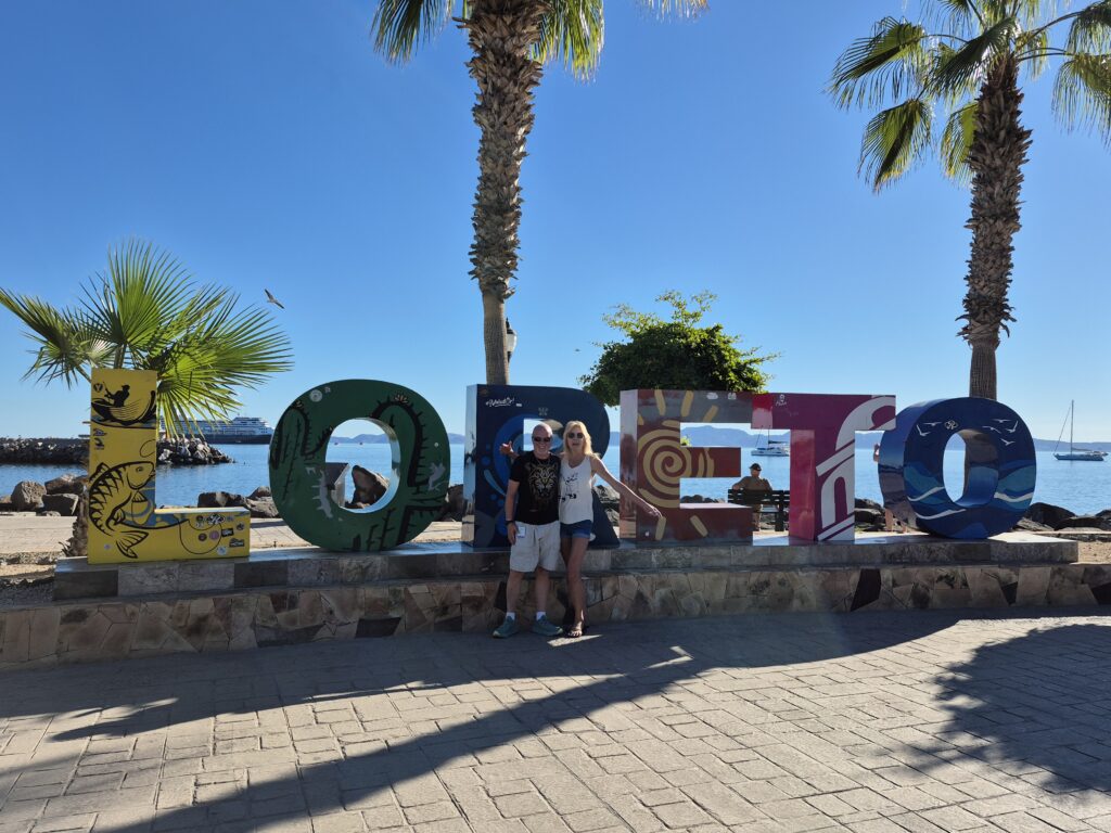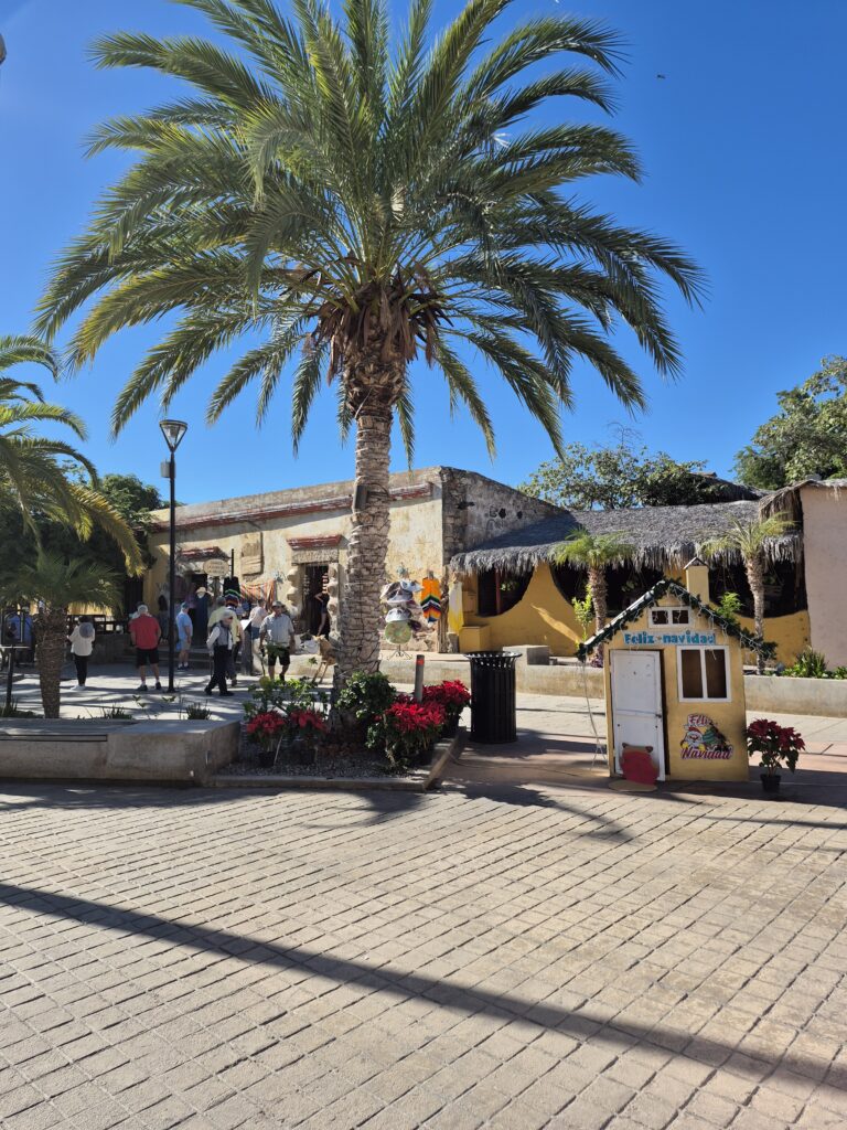 This was our fourth time for Kelly and me to visit Loreto and is one of our favorite ports on the Sea of Cortez. We tendered from the ship and landed at the little marina. We strolled down the Circuito Adofo Lopez Mateos it’s a beautiful boulevard with the Sea of Cortez and the Islas de Loreto on one side, and classical Spanish/Mexican buildings on the other. We turned up the main drag (for the life of me I can’t remember the name) – it’s cobblestone and pedestrian only so very friendly for tourists 😊. Lots of little hotels and craft stores lined both sides with many flowering trees making for a pleasant walk. We got up around the main square and close to the Mision de Nuestra Senora de Loreto Concho – the oldest Mision in Baja and California. The whole street was decorated for Christmas and made for a festive air. We wandered down to the end and checked out some beautiful galleries and stores. We stopped at the Zapata Cantina for a couple of beers and watched the other tourists stroll by. Checked out more stores and then headed back to the waterfront where we stopped for a few drinks at our favorite bar/restaurant Loreto Islas. Then we headed back to the terminal and tendered back to the ship. A lovely day in a lovely town 😊.
