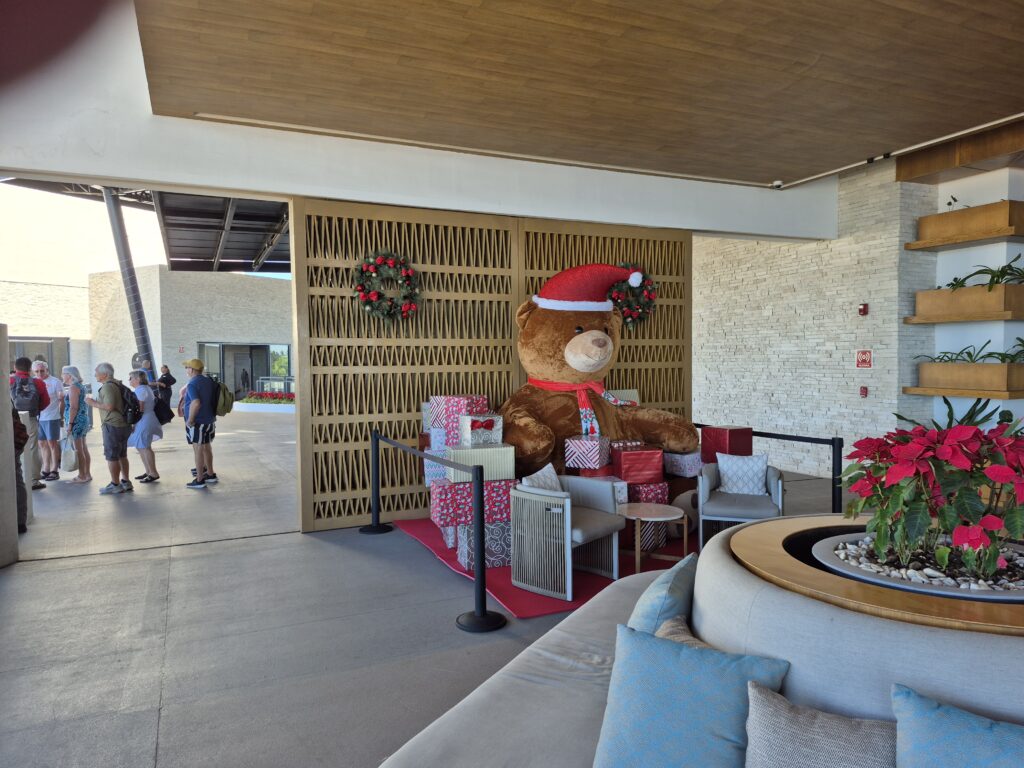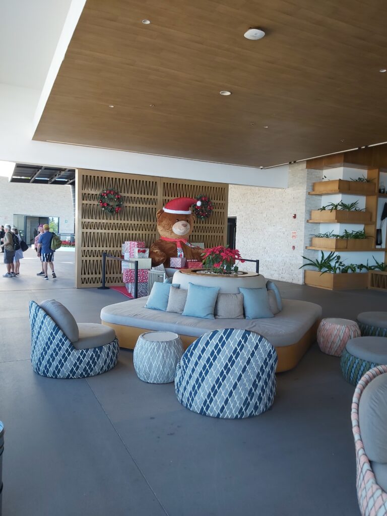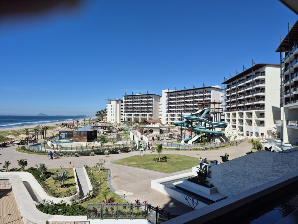 Well, here is where we ended up with a problem – we had wanted to go to the El Cid Marina on an excursion but the excursion was cancelled due to lack of people wanting to go. So the excursion desk booked us on an excursion to Dreams Estrella del Mar – supposedly a five star resort with everything included. It was about a 45 minute drive to the Dreams (it’s out close to the airport) which was nice, but a little boring. The tour guide was completely inept – or just didn’t care – and pretty much us to ourselves the whole time we were there ☹. There was no designated seating area for us – as promised – it was almost impossible to get a drink, but Kelly and I are good at this and we found a barman that served us beer in cans 😊 – and the 5 star buffet lunch was mediocre and at best a 2 star ☹.  The hotel was rather sterile, the pools and lazy river a disappointment, and Kelly and I would never go back there again ☹. We’ve been spoiled too much by the El Cid Marina 😊 – so maybe next year we can go back to El Cid 😊. We headed back to the cruise terminal, took a look around the shops, and went back to the ship. A very disappointing day as we love Mazatlan so much.
