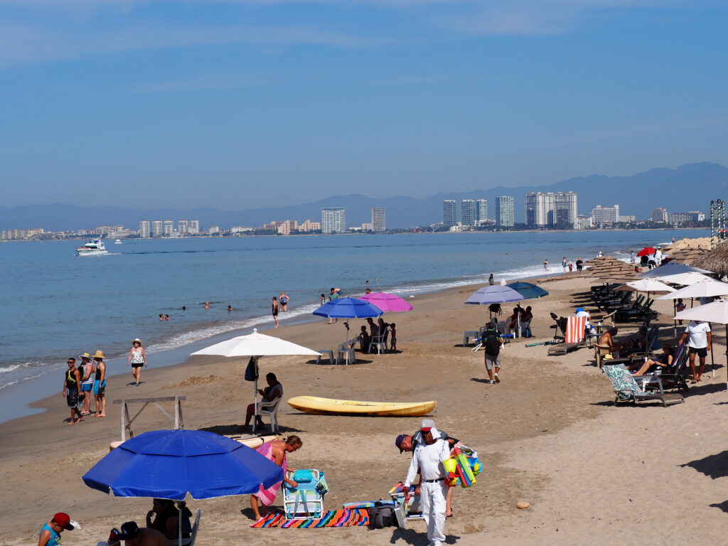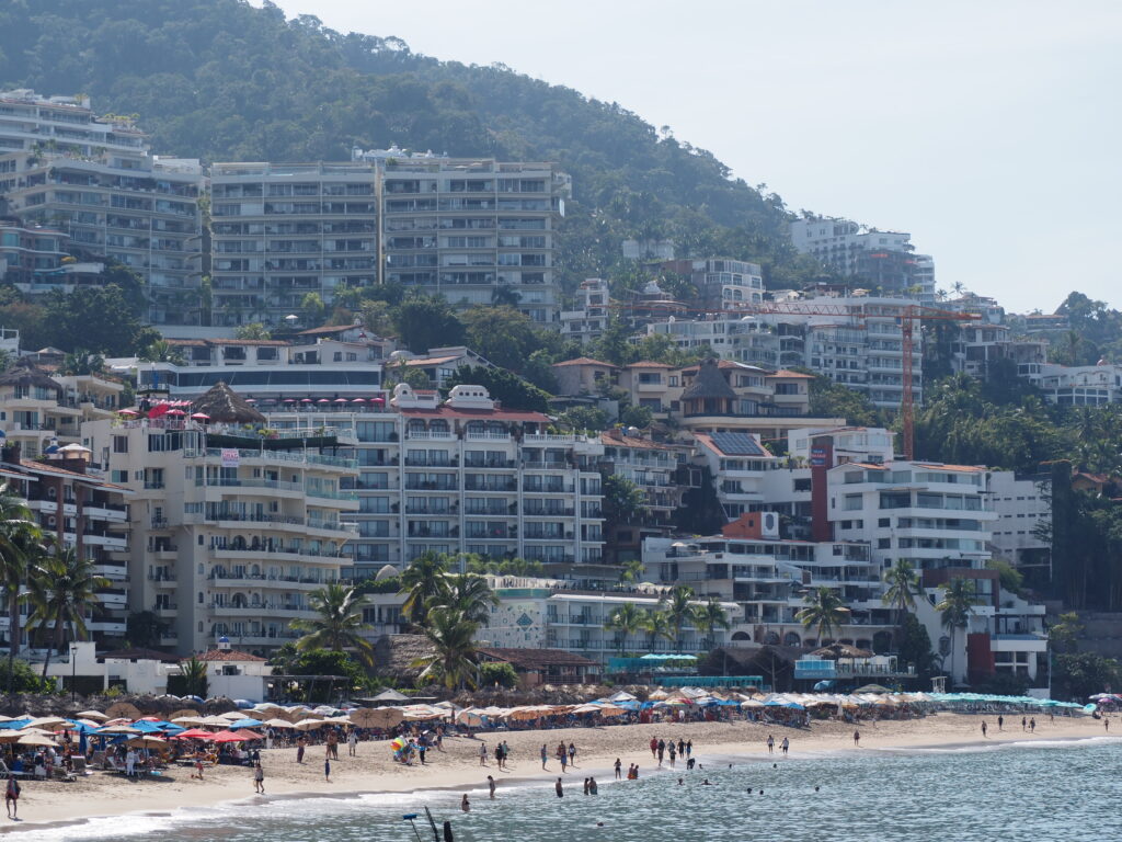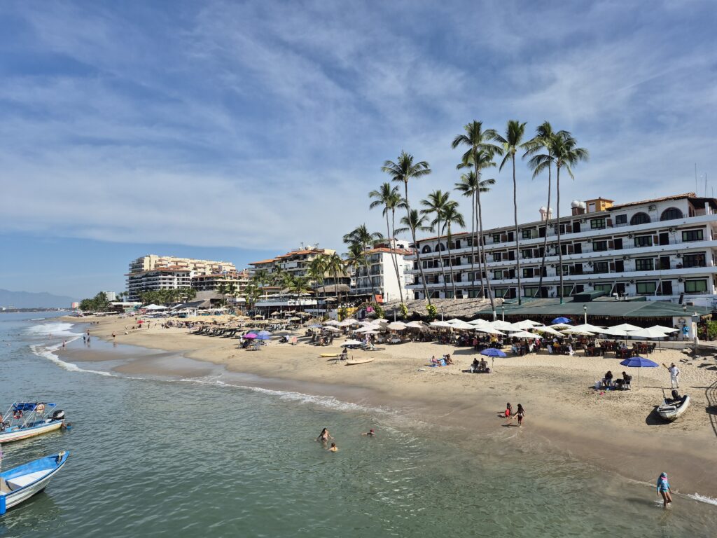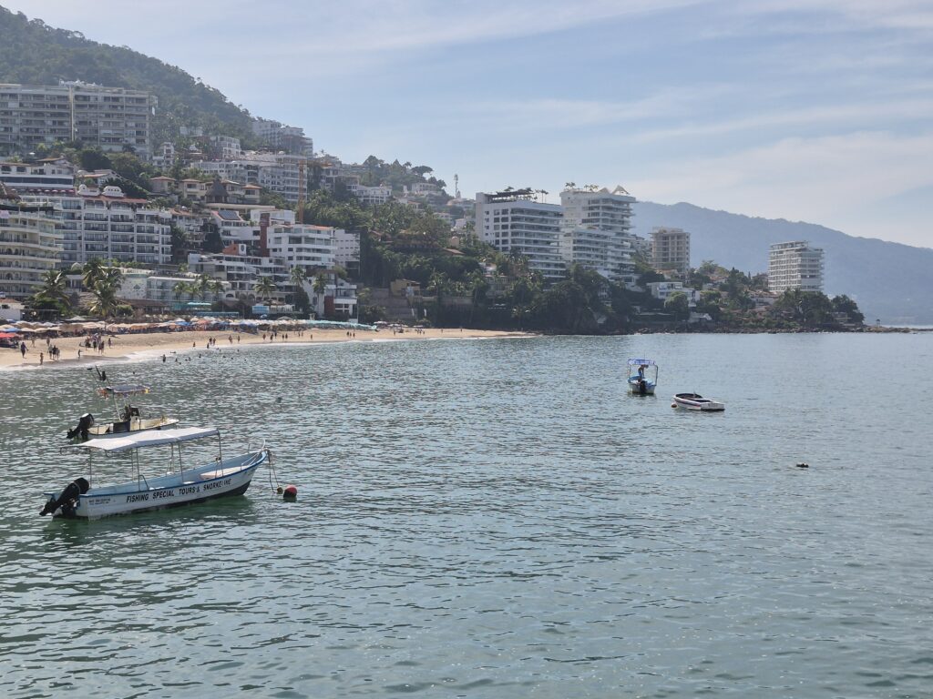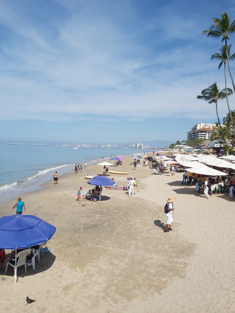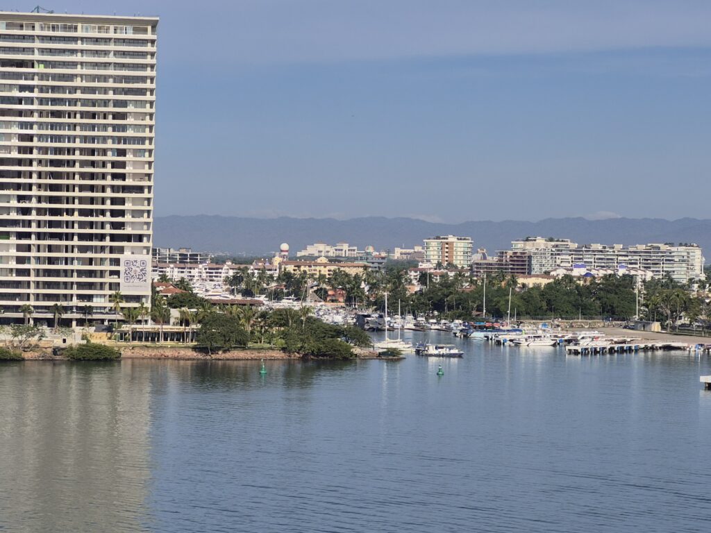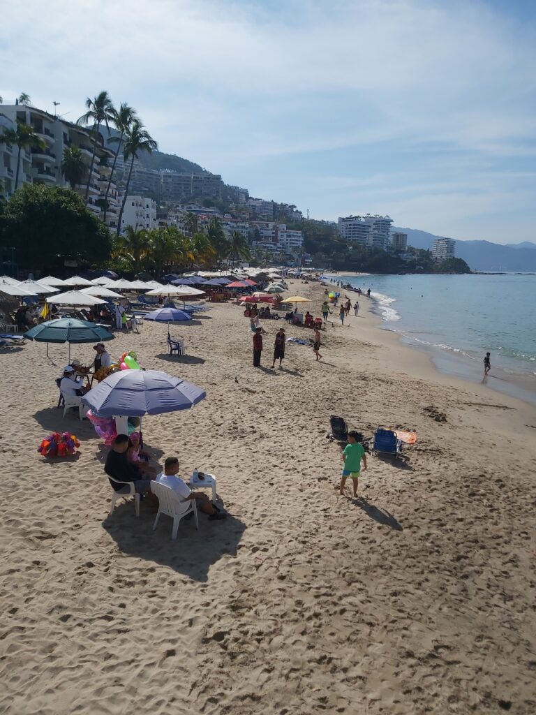 We disembarked the ship and went through the cruise terminal – it’s gigantic!! We know Puerto Vallarta very well and all we really wanted to do was spend some beach time so we took a taxi down to the main plaza. It was too bad that it was a Sunday instead of a Saturday – the latter has a gigantic craft market, food stalls, and live music and is a lot of fun to go around. However, they did have a doggy adoption set up with all these cute puppies running around. And they probably all found a home – I think everyone in the Romantic Zone and the Playa del Muertos has a pet of some kind 😊. We wandered along the shoreline in the Romantic Zone – tons of restaurants, bars, boutique hotels, and craft stores. We finally found a bar with a beach front, umbrellas and chairs, free Wi-Fi, and cheap beer and spent a couple of hours relaxing and watching the watercraft, sail boats, and para-sailors go by. Puerto Vallarta is on the Bay de Banderas (Bay of Flags – goes back to a historic moment when the Spaniards and Indigenous Indians signed a peace treaty out on the bay, all the boats were flying flags) which is absolutely a stunning scenic area – probably one of the prettiest bays in Mexico. We headed back along the Malecon until we reached the Church of Our Lady of Guadelupe and then grabbed a taxi to go back to the cruise terminal. Another lovely day in Mexico 😊.