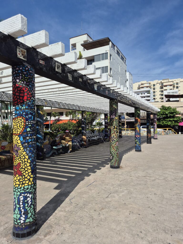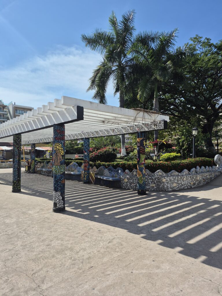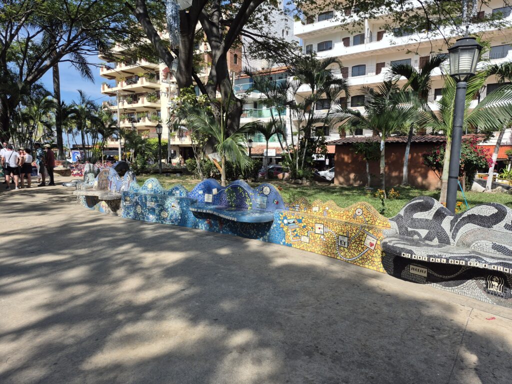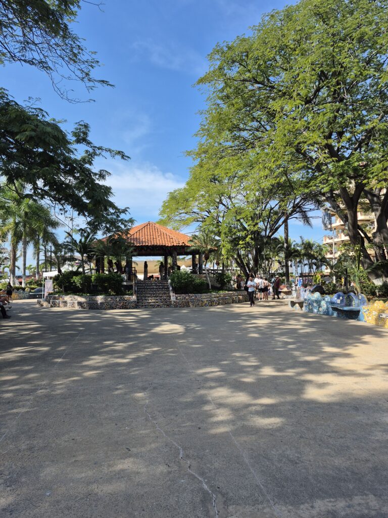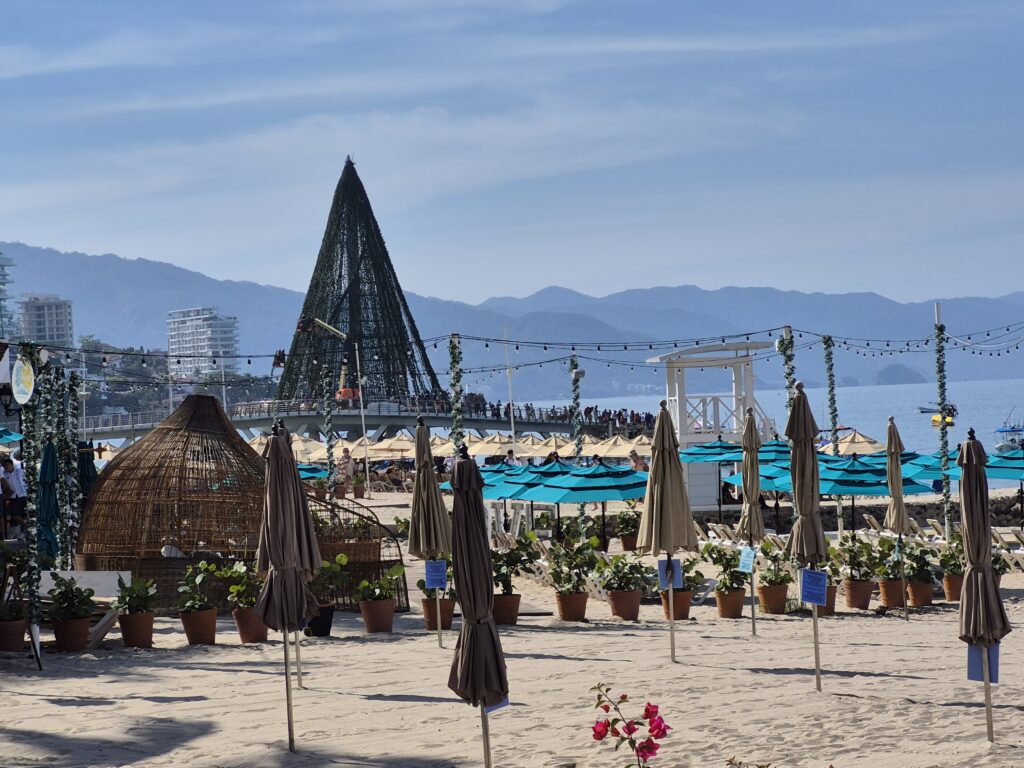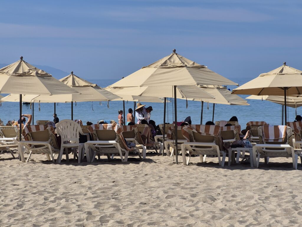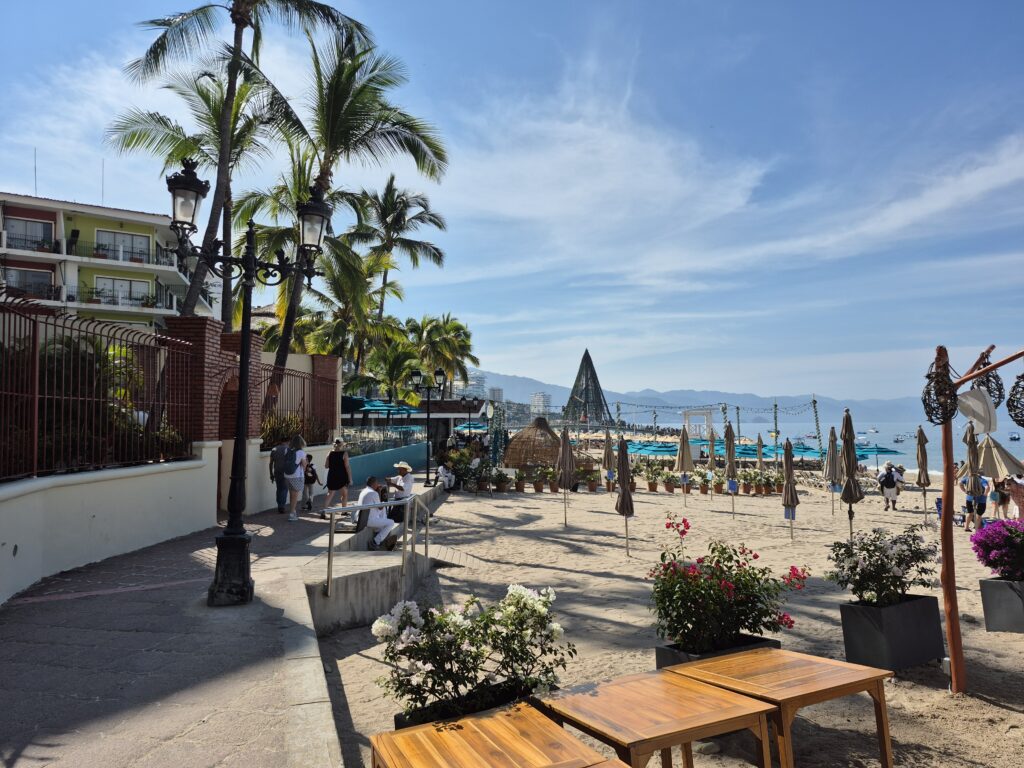 We disembarked the ship and went through the cruise terminal – it’s gigantic!! We know Puerto Vallarta very well and all we really wanted to do was spend some beach time so we took a taxi down to the main plaza. It was too bad that it was a Sunday instead of a Saturday – the latter has a gigantic craft market, food stalls, and live music and is a lot of fun to go around. However, they did have a doggy adoption set up with all these cute puppies running around. And they probably all found a home – I think everyone in the Romantic Zone and the Playa del Muertos has a pet of some kind 😊. We wandered along the shoreline in the Romantic Zone – tons of restaurants, bars, boutique hotels, and craft stores. We finally found a bar with a beach front, umbrellas and chairs, free Wi-Fi, and cheap beer and spent a couple of hours relaxing and watching the watercraft, sail boats, and para-sailors go by. Puerto Vallarta is on the Bay de Banderas (Bay of Flags – goes back to a historic moment when the Spaniards and Indigenous Indians signed a peace treaty out on the bay, all the boats were flying flags) which is absolutely a stunning scenic area – probably one of the prettiest bays in Mexico. We headed back along the Malecon until we reached the Church of Our Lady of Guadelupe and then grabbed a taxi to go back to the cruise terminal. Another lovely day in Mexico 😊.