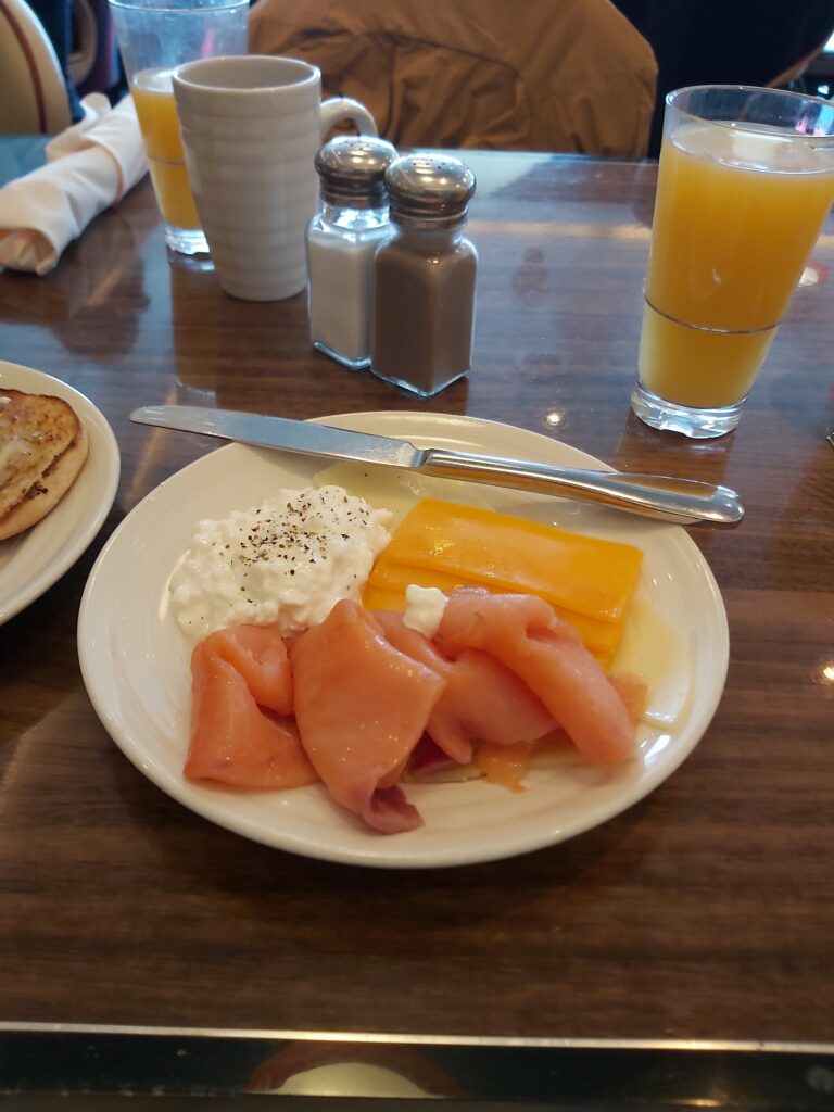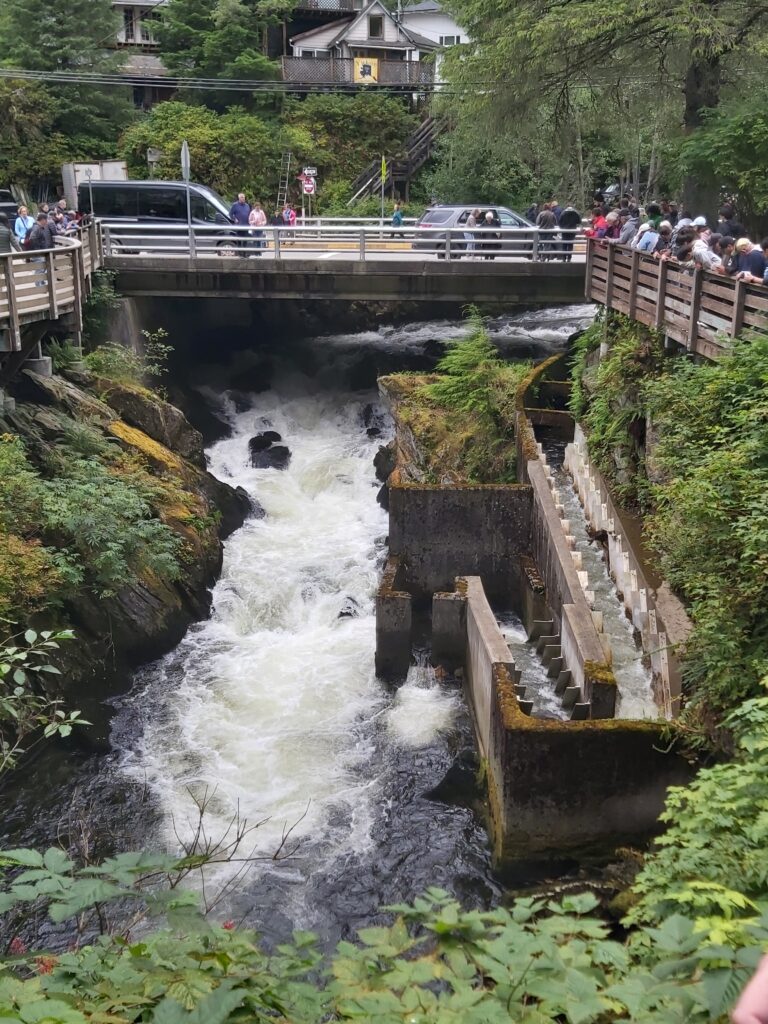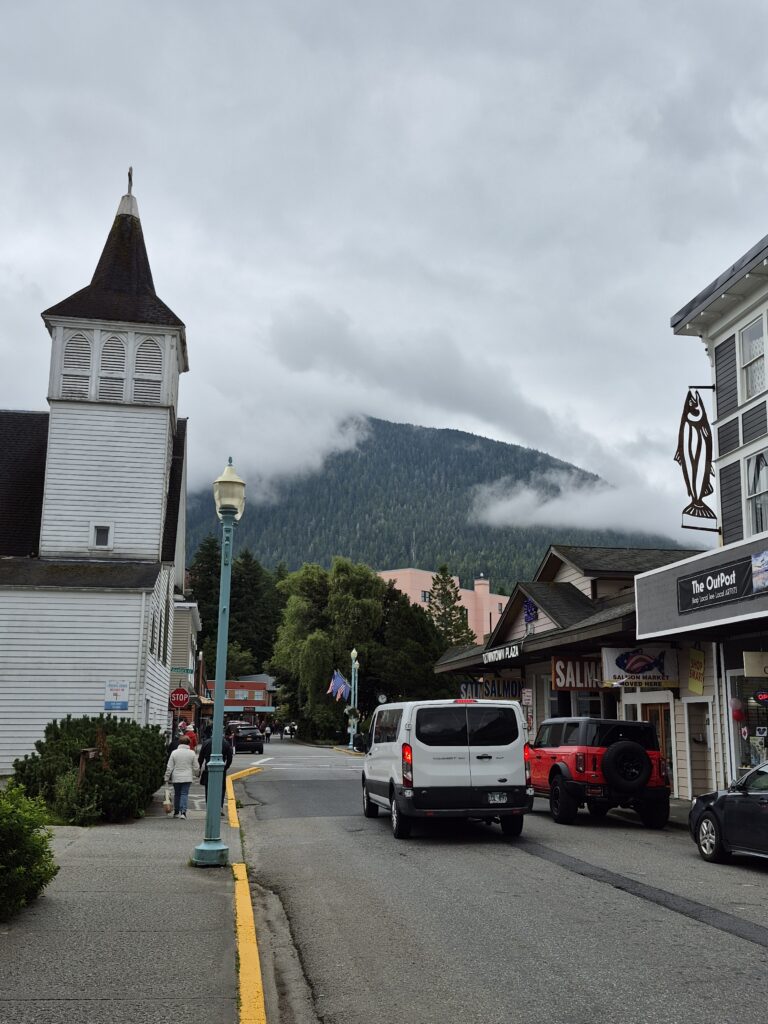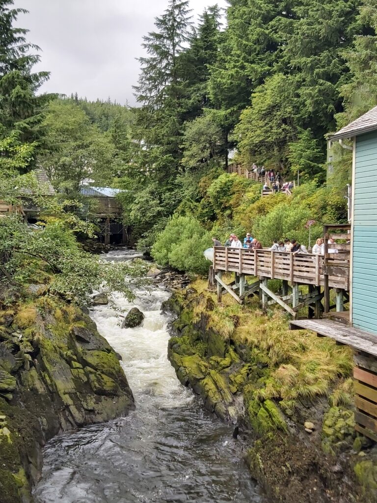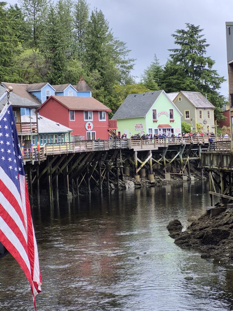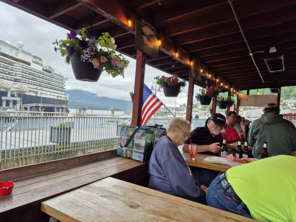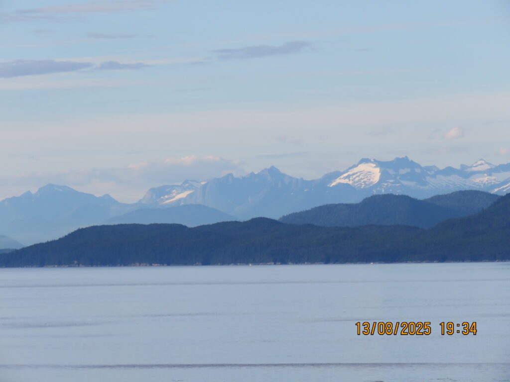August had been very hot at home… but we have been on a cruise to Alaska where it was fairly cold and wet most days 😊.  After dropping Doug the Dog off at the kennel we went to Toronto and flew out the next day (Saturday) to Vancouver. It was pretty cloudy the whole way and didn’t get to see any land until just before we landed. We took the Skytrain from the airport down to the waterfront station… very quick trip, only about 20 minutes, and only about $8 Canadian each… a lot cheaper than taking a taxi 😊. It was only a short 8 minute walk to the cruise terminal and we were onboard the Konigsdam within 30 minutes of arriving 😊. It was a hot day in Vancouver… 26C.. and a beautiful sail away going under the Lionsgate Bridge. The next day  was a sea day… and very cloudy and cold. But we had an amazing Alaskan Brunch in the Main Dining Room. We had Salmon Chowder in a Bread Bowl; Crab & Hot Smoked Salmon Cakes; Kodiak Steak  & Egg Skillet; … and to finish it off, a Caesar 😊. It cleared up during the afternoon but it was still pretty cold. We spent the afternoon reacquainting ourselves with old friends among the staff and later dressed for dinner and went dancing at the Rolling Stone bar. The next morning was very cold and foggy, the ship dropped off some passengers for an excursion into Tracy Inlet and proceeded to sail to Juneau. We watched the approach from the Crow’s Nest – that brought back a lot of memories for me as I had last navigated this channel 40 years ago in the Navy. Juneau has changed a lot – it’s mostly souvenir shops and tourist traps now. It rained heavily throughout the day and it was a pretty miserable experience walking around the town ☹.  That night we ate at the Pinnacle Steakhouse – it’s usually a pretty good experience but unfortunately the food and the service were a little off that evening ☹. More dancing later that night at  Rolling Stone and BB Kings 😊. The next day saw us sailing into Skagway – the fog lifted quickly and it turned out to be a beautiful sunny  day 😊. We had booked a 7 hour excursion that basically traced out the history of the gold rush in the Yukon back in 1898. It started out with a tour bus taking us through the town and stopping at Liarstown – a settlement where the gold miners, journalists, and hookers lived before either trying their luck at getting up to the Yukon over White Pass or earning their living at the settlement on the riches gained by the successful miners. There were several buildings and tents at the site – hardware store. barber, newspaper, brothel, and an open air theatre where actors dressed in the costumes of the 1890’s put on a musical and theatre display. It was pretty good…. And there was a full buffet afterwards – smoked salmon, baked beans, salads, everything!! …And very delicious!! 😊 The tour bus then took us to the train station where we boarded the WP & YR train for a 40km trip through a panorama of mountains, glaciers and gorges up 2,865 feet to the White Pass. At Fraser, British Columbia we disembarked the train and reboarded the tour bus to descend back to Skagway. The views and scenery going to Fraser and returning to Skagway was amazing!! Back in town we walked around the main street exploring shops and bars before returning to the ship. The next day was a sea day… or I should say a fjord day … as we explored Tracy Arm Fjord, known for its steep granite cliffs, numerous waterfalls, and the twin Sawyer Glaciers at its head. This protected park is part of the Tongass National Forest and offers opportunities to see calving glaciers, wildlife like seals, otters, and bears, and stunning scenery. We were very fortunate to have another sunny day without rain … the views were spectacular!! Later that evening we went to a Morimoto popup in Tamarind where we had an amazing dinner … Tori Ramen Noodle Soup and Gyozo Dumplings to start, and Ishiyaki Buri Bop, Angry Lobster Pad Thai, and Shrimp Three Ways as the entrees…. all absolutely delicious!! …And of course…dancing after dinner 😊. The next morning saw us sailing into Ketchikan … the ‘Salmon Capital of the World’ …. through mountainous islands and past little fishing ports. It’s a popular destination famous for its rich Alaska Native culture through totem poles at Saxman totem Park; Creek Street … which was once a notorious red-light district; canneries and salmon spawning ladders; and of course axe throwing competitions put on for the many tourists that visit Ketchikan … well over 1.2 million a year!! It’s a quaint town with many parks and stores to explore and we enjoyed ourselves immensely 😊 The next day saw us heading back south through the Canadian Inside Passage to return to Vancouver. It was pretty cool to see Northern Vancouver Island, especially at sunset… I spent many years sailing around that area 😊. That night we had our last dinner onboard – at Rudi’s Sel De Mer, a seafood and steak restaurant. An excellent meal – we had Crab Bisque; Prosciutto and Burrata Salad; Escargots; Filet Mignon with a Lobster Tail; and a Grilled Seafood Platter 😊. Delicious!! 😊. Our return flight to Toronto from Vancouver was supposed to be the next morning, Saturday. Friday night we learned that our flight had been cancelled due to a strike by the airline’s stewards ☹. As this strike affected almost all of Air Canada’s flights there were a lot of travellers around the world stranded and having to make new travel arrangements. We weren’t able to find a flight for the next day but did manage to find one for Sunday. …Out of Seattle. And a bus ride… to Seattle. So, the next morning after saying goodbye to our friends we disembarked from Konigsdam and headed out on the monorail to the bus station. …Where we were 4 hours … waiting for the bus to depart. It was actually a nice ride … except for an hour stop at the border for customs … and we got to
